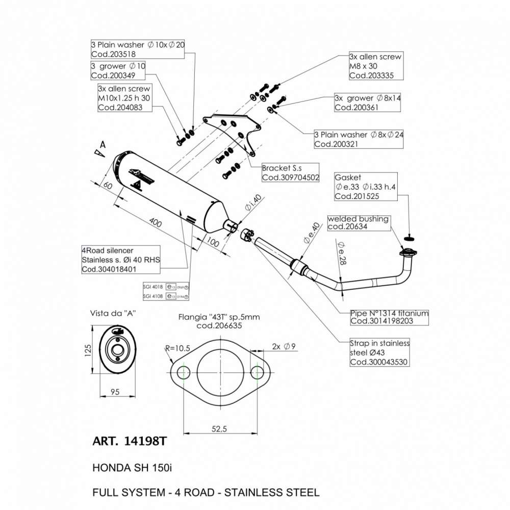 4ROAD TITANIUM HEADER for HONDA SH 150i 2017 - 2020